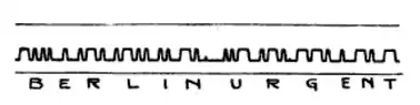 A simpler mechanism, operating quite differently, was developed by Alexander Muirhead. This used a vibrating pen to avoid the same problem of the ink sticking to the paper.[5] The recording pen was suspended on a thin wire, vibrated by an electromagnet mechanism similar to that of an electric bell, to break contact with the paper.