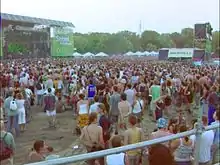 The week-long festival has grown from a relatively low-profile student event in 1993 to become one of the prominent European rock festivals, with about half of all visitors coming from outside Hungary, especially from Western Europe.[1] It also has a dedicated "party train" service (with resident DJs) that transports festival-goers from all over Europe.[2] The second event (1994), labelled Eurowoodstock, was headlined by performers from the original Woodstock festival. By 1997, total attendance surpassed the 250,000 mark, reaching an all-time peak in 2016 with 496,000 visitors from 95 countries (the daily capacity having been raised to 90,000).[3] In 2019 that record was once broken when 565,000 visitors attended the festival.[4] Since the mid 2000s, Sziget Festival has been increasingly labelled as a European alternative to the Burning Man festival due to its unique features ("an electronically amplified, warped amusement park that has nothing to do with reality").[5]