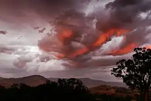 In Māori mythology, Tāwhirimātea (or Tāwhiri) is the god of weather, including thunder and lightning, wind, clouds and storms. He is a son of Papatūānuku (earth mother) and Ranginui (sky father). Tawhirimatea is the second oldest of 7 children, all of whom are boys. In his anger at his brothers for separating their parents, Tāwhirimātea destroyed the forests of Tāne (god of forests), drove Tangaroa (god of the sea) and his progeny into the sea, pursued Rongo and Haumia-tiketike till they had to take refuge in the bosom of their mother Papa, and only found in Tūmatauenga a worthy opponent and eternal enemy (Tregear 1891:499). To fight his brothers, Tāwhirimātea gathered an army of his children, winds and clouds of different kinds - including Apū-hau ("fierce squall"), Apū-matangi, Ao-nui, Ao-roa, Ao-pōuri, Ao-pōtango, Ao-whētuma, Ao-whekere, Ao-kāhiwahiwa, Ao-kānapanapa, Ao-pākinakina, Ao-pakarea, and Ao-tākawe (Grey 1971). Grey translates these as 'fierce squalls, whirlwinds, dense clouds, massy clouds, dark clouds, gloomy thick clouds, fiery clouds, clouds which preceded hurricanes, clouds of fiery black, clouds reflecting glowing red light, clouds wildly drifting from all quarters and wildly bursting, clouds of thunder storms, and clouds hurriedly flying on' (Grey 1956:5).