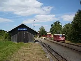 The Třemešná ve Slezsku - Osoblaha railway is a narrow gauge line connecting Třemešná ve Slezsku on the Krnov - Głuchołazy line with the border town Osoblaha. It is one of the three remaining narrow gauge railway lines with regular passenger traffic in the Czech Republic and the last one operated by the state-owned railway company České dráhy.