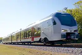 On June 9, 2015, Trinity Metro ordered an initial eight Stadler Rail 4-car articulated FLIRT3 (Fast Light Innovative Regional Train) DMUs.[10] The contract was valued at $106.7 million, with an option for up to 24 additional DMUs, and includes the supply of components for 10 years. This is Switzerland-based Stadler's first order in the US for any model outside its Stadler GTW product line, therefore making it subject to the regulations of the Buy America Act. As such, one element of the contract is that the final assembly of the trains will take place in the US, at their plant in Salt Lake City.[11][12][13]