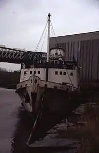 In 1993 she was again moved, this time to Hull, being moored in the disused Ruscador Dry Dock. Here, a fire which broke out in August 1997 seriously damaged many of the vintage wood panels of the ship's interior and she was moved to the yard of Pallion Engineering Company Ltd on the River Wear, in the shadow of the Queen Alexandra Bridge in Sunderland, inside Pallion Dry Dock.[2]