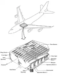 ![]() The reconstructed wreckage of TWA 800, stored at Calverton Executive Airpark by the NTSB, May 1997 | |