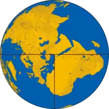 The T and O map represents only the one half of the spherical Earth.[5] It was presumably considered a convenient projection of known-inhabited parts, the northern temperate half of the globe. It was then believed that no one could cross the torrid equatorial clime and reach the unknown lands on the other half of the globe. These imagined lands were called antipodes.[5][6]