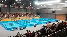 The competitions took place at the Atos Markham Pan Am Centre (Markham Pan Am Centre) located in the city of Markham, about 31 kilometers from the athletes village. The arena had capacity of 2,000 people per session (1,000 permanent seating + 1,000 temporary seats).[2] The venue also hosted badminton competitions earlier during the games. The venue also hosted the water polo competitions, but in the other side of the centre (an Olympic sized pool).[5]
