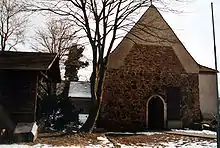 Tabor Church is by far the oldest still existing building in the locality. The church is oriented and was built in the late 13th century,[2] or possibly earlier, around 1230. That is about 100 years earlier than the first recorded mentions of the former village (in 1352 and 1356).