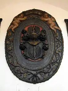 The christening bowl of 1671 shows the arms of the von Röbel family, who donated it. The parapet of the organ loft (17th century) features vivid flat carvings and again the arms of the von Röbel family. Two further sculptures of female saints (around 1430) belong to the furnishings. An oval epitaph commemorates Hans Christoph von Röbel (d. 1671). On the eastern outside wall, four plates recall the four major restructurings of the church in 1738, 1801, 1905, and 1924.