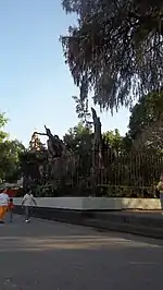 The Tacuba area is home to a neighborhood called Popotla. Here are the remains of a Montezuma cypress, under which it is said that Hernán Cortés sat and wept after being run out of Tenochtitlan during La Noche Triste in 1520. Next to the plaza where this tree is found, there is an old mansion whose east side has a mural called “Noche de la Victoria” (Night of the Victory) done in 2010. Also here is the parish called Pronto Socorro. Further east along the Calzada Tacuba-Mexico, there is the Colegio Militar, next to the Metro stop of the same name. This school was founded in 1823 and operated until 1976. Today it is the site of the Universidad del Ejército y Fuerza Aérea which still trains part of Mexico’s military.[4]