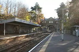 There are separate platforms for 'down' trains north to Tattenham Corner and 'up' trains to Purley and London, linked by a road overbridge at the south end of the station on which is located the former station building.[5]
