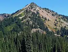 Tahtlum Peak is a 6,567 feet (2,002 m) mountain summit located east-southeast of Chinook Pass in the William O. Douglas Wilderness. It's situated north of Dewey Lake in Yakima County of Washington state. Tahtlum Peak is part of the Cascade Range and its nearest higher neighbor is Dewey Peak, 1.61 mi (2.59 km) to the south.[1] The name tahtlum derives from Chinook Jargon which means ten.[3] Precipitation runoff from Tahtlum Peak drains into tributaries of the Yakima River.