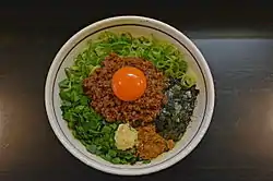 Taiwan mazesoba (Japanese: 台湾まぜそば, lit. 'Taiwan mixed noodles') is a dry noodle dish that originated in Nagoya, Aichi Prefecture, and is now considered a Nagoya delicacy.[1] The dish was invented by the ramen chain Menya Hanabi in 2008.
