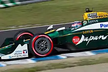 In November 2013, Sato became a test and development driver for the FIA Formula E Championship.[22] In September 2014, Sato joined his former Formula One team Amlin Aguri to race in the first-ever Formula E race, the 2014 Beijing ePrix, replacing the team's regular driver Antonio Félix da Costa as he could not participate due to other commitments.[23] Sato scored two points after he set the fastest lap of the race with a time of 1:45.101, but had to retire from the race with mechanical issues. As it was Sato's only Formula E race, he became the only driver in the series' history with a 100% fastest lap record.[24]