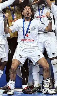 ![]() Al-Bloushi celebrating after winning the AFC Champions League trophy with Al Sadd in 2011 | |||