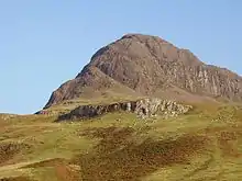 At the base of the twin summits of Preshal More and Preshal Beg, near Talisker, the laterally-restricted Preshal Beg Conglomerate Formation crops out. These heterogebeous sedimentary rocks include debris flow (?lahars), alluvial fan and fluviolacustrine facies volcanoclastic deposits accumulated with a substantial and long-lived valley drainage system which developed upon the Glen Oraid Lava Formation surface. Subsequently this topography was inundated by two thick (at least 120 m or 390 ft) intracanvon flows of compositionally distinctive tholeiitic basalt belonging to the Talisker Lava Formation. These flows mark a significant change in the chemical signature of the lava sequence and have a strong compositional affinity with the various intrusive units of the Cuillin Centre. … the Preshal More flows may represent the only remnants of an originally significant lava shield that developed above the Cuillin centre.