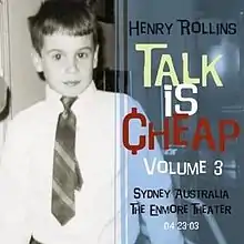 Talk Is Cheap: Volume 3 is the 13th live spoken word album by Henry Rollins, released on January 13, 2004 on 2.13.61 Records. This show was recorded at the Enmore Theater in Sydney, Australia on April 23, 2003, exactly two years after Talk Is Cheap: Volume 1 (2003) was recorded at the same venue.