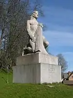 Talsi is characterised by its location by nine hills and two lakes. The hills are called Pilskalns, Ķēniņkalns, Leču kalns, Tiguļu kalns, Sauleskalns, Baznīckalns, Krievragkalns, Vilkmuižas kalns and Dzirnavkalns.[4] Pilskalns, meaning "castle hill" is the location of the old hill fort. The hill is 32 metres (105 ft) high and lies at the centre of the town. An archaeological excavation of the hill fort was carried out here in 1936 – 1938.[2] The highest hill in Talsi is Tiguļu kalns. This hill has an arboretum and is the location of Talsi Regional Museum, housed in a manor house originally built for a local aristocrat, Baron von Firck.[6] OnLeču kalns there is a memorial sculpture in remembrance of the Revolution of 1905, when six revolutionaries where killed here.[7] Talsi lake, in the middle of the town, is surrounded by a promenade and there is a fountain installed in the lake.[8]