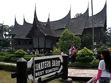 Since each Indonesian province maintains its own unique and distinct cultures, shelters, attire and dialects, TMII built a model of each of the houses from Indonesian provinces. TMII attempted not only to reconstruct the homes of the various provinces, but also to create a realistic model of the environment and shelters of the various people of Indonesia.[3] The venues, which are situated around the main lake in a similar fashion to the different islands of the Indonesian archipelago, are thematically divided into six areas in respect to the main islands of Indonesia; Java, Sumatra, Kalimantan (Borneo), Sulawesi, the Lesser Sunda Islands, Maluku and Papua. Each pavilions featured in typical vernacular Indonesian architecture of each provinces. Examples of Indonesian traditional vernacular houses are: Joglo and Omah Kudus Javanese houses of Central Java and Yogyakarta pavilion; Minang Rumah Gadang of West Sumatra pavilion; Malay houses of Jambi and Riau provinces; Torajan Tongkonan and Bugis house of South Sulawesi pavilion; and Balinese house compound with intricately carved candi bentar split gate and kori agung gate.
