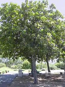 Tamanu oil is pressed from nuts of either the Calophyllum inophyllum (usually) or the Calophyllum tacamahaca (ati), tropical trees belonging to Calophyllaceae family. The nuts yield 70–75% of the greenish-yellow inedible oil.[1] The oil originates in Polynesia, where it continues to play an important cultural role. Commercial uses of tamanu oil are predominantly for skin care. The oil has both medicinal value and use as a fuel. Calophyllum inophyllum oil (CIO) is rich in antioxidants and contains UV-absorption properties, that can be used to treat skin within the dermatology field.[2] Tamanu oil has been found to have cytotoxic, wound healing, and antibacterial properties.[3]
