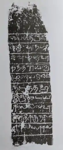 Tamil inscriptions in Sri Lanka date from the centuries before Christ[1] to the modern era. The vast majority of inscriptions date to the centuries following the 10th century AD, and were issued under the reigns of both Tamil and Sinhala rulers alike.[2] Out of the Tamil rulers, almost all surviving inscriptions were issued under the occupying Chola dynasty, whilst one stone inscription and coins of the Jaffna Kingdom have also been found.[3]