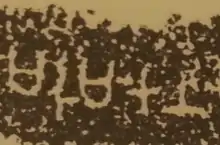 The letters 𑀴, 𑀵, 𑀶 and 𑀷 are unique to Tamil Brahmi. They are found in multiple Tamil words in the earliest Prakrit inscriptions of Sri Lanka.[11][12] The Veḷ name is found several times,[13][14] mostly associated with the chief title Parumaka.[15] Parumaka is the single most common lay title in the entire corpus of ancient Brahmi inscriptions. The Dravidian kinship term Marumakaṉ which means nephew is also present.[13][12] The word Dameḻa (Tamil) is present in six early Prakrit inscriptions related to Buddhist donations. The 𑀟 letter (often reversed) is used here to represent an early form of the Tamil 𑀵 (ḻa).[13][11][16] |