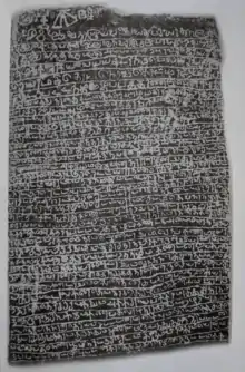 Inscription found in Medirigiriya, Polonnaruwa District dated to 1054 AD in the reign of Rajendra Chola II. It records donations to a Hindu temple in the area.[41] |
