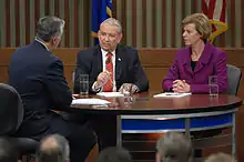 Baldwin ran as the Democratic nominee against Republican nominee Tommy Thompson, who had formerly been governor and Secretary of Health and Human Services. She announced her candidacy on September 6, 2011, in a video emailed to supporters.[40] She ran uncontested in the primary election,[41] and spoke at the 2012 Democratic National Convention about tax policy, campaign finance reform, and equality in the United States.[42]