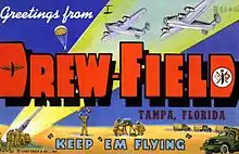 The United States Army Air Corps began negotiating for the use of Drew Field in 1939 during the buildup of military forces prior to World War II. In 1940, the City of Tampa leased Drew Field to the U.S. Government for 25 years, or until the end of the "national emergency." During the war, the United States Army Air Forces expanded and modernized the airport. The airfield was used by the Third Air Force and renamed it Drew Army Airfield. The Third Air Force used it as a training center by 120,000 combat air crews, primarily in bomber aircraft for the European and Pacific theaters, and also flew locally based antisubmarine patrols from the airfield until that mission was fully taken over by Naval Aviation assets of the U.S. Navy and U.S. Coast Guard. There was one mishap in 1943 that killed five fliers.[8] Despite this, Drew Field set a safety record for the Third Air Force in 1945 after 100,000 flying hours had been completed over a period of 10 months without a fatal incident. The aircraft operated included the Boeing B-17 Flying Fortress, Douglas C-47 Skytrain, North American AT-6, North American B-25 Mitchell, and others.[9]