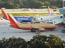 The airport is served by over twenty major air carrier airlines, four regional airlines, and three air cargo carriers. Three of the regional airlines operate under the banner of mainline air carriers, while a fourth, Silver Airways, is independent and utilizes Tampa International Airport as a hub for its operations. Southwest Airlines carries the airport's largest share of passengers, operating up to 121 daily flights.[5]