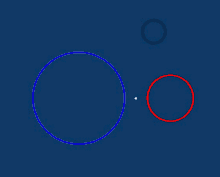 - If the circles touch internally at one point () – have one point of internal tangency – then they have no internal bitangents and one external bitangent, namely the common tangent line, which has multiplicity two, as above.