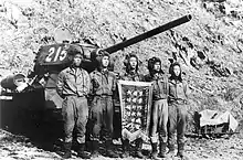 During the Korean War, the tanks of North Korean 105th Armored Division was instrument as part of the North Korean advance from Seoul to Taejon and took part in the Battle of Osan against Task Force Smith and Battle of Chonan and subsequent Battle of Pusan Perimeter between August and September 1950. The 107th Tank Regiment, equipped with T-34 tanks, defeated Task Force Smith during the initial advances of the Korean People's Army. The regiment then fought with the rest of the division in the Battle of Pusan Perimeter.[5]