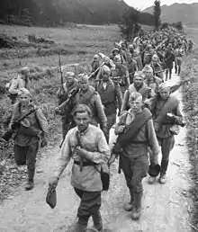 After the military was organized and facilities to educate its new recruits were constructed, the Constabulary Discipline Corps was reorganized into the Korean People's Army General Headquarters. The previously semi-official units became military regulars with distribution of Soviet uniforms, badges, and weapons that followed the inception of the headquarters.[1]