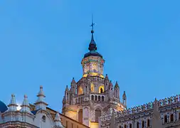 In the fourteenth century, being outside of the city walls, it was assaulted and destroyed during the War of the Two Peters. Its naves were then rebuilt with Mudéjar decorations, as well as its lateral chapels, exterior walls, dome (cimborio), and tower. The tower was rebuilt in the fifteenth century.