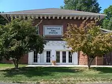In 1825 (or 1827),[2] the Tariff Manufacturing Company built a carpet mill along the Farmington River, giving its name to the area.[3][4] The company name came from the Tariff Act of 1824 which included protective tariffs for a number of products, including wool and cotton textiles. The area did not have sufficient housing for the workers, so the company built housing, some of which survives today.[5] The carpet business survived for a few decades, but by 1867, the primary industry in the area was sorting and packing of tobacco. The tobacco business would continue as the chief industry through the 1930s.[2] The town was the site of a major rail accident, the Tariffville train crash, in 1878.[6]