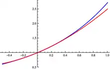 In calculus, Taylor's theorem gives an approximation of a k-times differentiable function around a given point by a polynomial of degree k, called the kth-order Taylor polynomial. For a smooth function, the Taylor polynomial is the truncation at the order k of the Taylor series of the function. The first-order Taylor polynomial is the linear approximation of the function, and the second-order Taylor polynomial is often referred to as the quadratic approximation.[1] There are several versions of Taylor's theorem, some giving explicit estimates of the approximation error of the function by its Taylor polynomial.