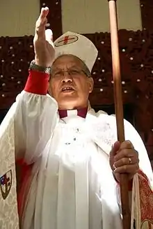 The Hui Amorangi comes under the Episcopal leadership of te Pīhopa o (the Bishop of) Te Manawa o Te Wheke, Ngarahu Katene. Katene was ordained (consecrated) as a bishop at Te Papa-i-o-uru Marae, Rotorua on 14 October 2006.[1] Katene is the first elected Pīhopa o Te Manawa o Te Wheke. In 2019 Archbishop Don Tamihere (Te Pihopa o Aotearoa) appointed Bishop Ngarahu as the Vicar General of Te Pihopatanga o Aotearoa. In this role, when delegated, Katene acts as the Senior Bishop for the Maori Anglican Church.