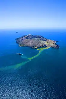 Te Paepae o Aotea, also known the Volkner Rocks (named after Carl Sylvius Völkner), are a group of andesitic rock stacks and pinnacles located 5 kilometres (3.1 mi) northwest of Whakaari/White Island in New Zealand's Bay of Plenty. They reach 113 metres above sea level, while the saddle separating them from Whakaari/White Island is over 200 metres deep.
