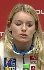 Belak began the season competing at the Doha World Cup where she won silver on vault behind Giulia Steingruber.[39] She next competed in Cottbus where she placed seventh on vault and eighth on balance beam.[40] Next she competed in Ljubljana and won silver on vault, bronze on uneven bars, place fourth on balance beam, and seventh on floor exercise.[41]