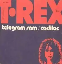 "Telegram Sam" was the first single to be issued by Marc Bolan's own T.Rex Wax Co. label, and was released on 21 January 1972. The b-side featured two songs in the UK, "Cadilac" (as printed on the EMI label of the original single) and "Baby Strange", the latter also included in the album The Slider.