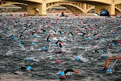 The lake is the host of multiple triathlon events, including the Tempe International Triathlon, Life Time Tri, and Ironman Arizona Triathlon. The Ironman Arizona Triathlon each November. The 2.4-mile (3.9 km) swim portion of the race is held in Tempe town lake.