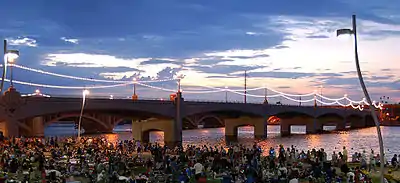![]() Bridges across the Tempe Town Lake on the Salt River, with Tempe Beach Park in the foreground | |