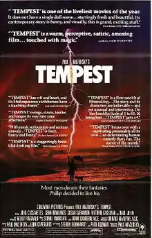 Tempest is a 1982 American south seas adventure comedy-drama romance film directed by Paul Mazursky. It is a loosely based, modern-day adaptation of the William Shakespeare play The Tempest. The picture features John Cassavetes, Gena Rowlands, Susan Sarandon, Raúl Juliá and Molly Ringwald in her feature film debut.[2]