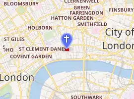 The Temple Church is a Royal peculiar[2] church in the City of London located between Fleet Street and the River Thames, built by the Knights Templar as their English headquarters. It was consecrated on 10 February 1185 by Patriarch Heraclius of Jerusalem.[3] During the reign of King John (1199–1216) it served as the royal treasury, supported by the role of the Knights Templar as proto-international bankers. It is now jointly owned by the Inner Temple and Middle Temple[4] Inns of Court, bases of the English legal profession. It is famous for being a round church, a common design feature for Knights Templar churches,[5] and for its 13th- and 14th-century stone effigies. It was heavily damaged by German bombing during World War II and has since been greatly restored and rebuilt.