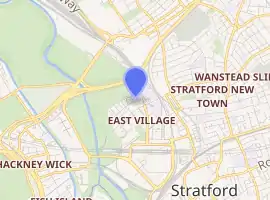 The track was located on the west side of Temple Mills Lane and accessed by a road called Wycliffe Road at the time.[2] To the west was the River Lea and it was dominated to the east, north and south by the Temple Mills Great Eastern Railway.[3] It was constructed on ground next to an Artificial Manure Works and resulted in the considerable reduction of Wycliffe Road.[4]