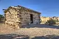 Mining claims were staked here as early as 1898, but no significant quantity of ore was produced until 1914 when mining for radium, vanadium, and uranium began and continued intermittently into the 1920s. The Temple Mountain mines were major uranium producers on the Colorado Plateau in the late 1940s and early 1950s.[7] Madame Marie Curie had isolated radium from uranium ore, and she and her husband Pierre conducted research on radium and received the Nobel Prize for their studies in radioactivity. Ore from the Temple Mountain mines was shipped to France for Madame Curie's radium experiments. There are accounts that she visited Temple Mountain during one of her trips to the United States because she wanted to see where ore of such high quality originated.[8][9] From 1948 through 1956, the Temple Mountain area produced approximately 1,287,000 pounds of Triuranium octoxide (U3O8), also known as yellowcake, and 3,799,000 pounds of Vanadium pentoxide (V2O5).[10] During the uranium mining boom as a result of the escalation of the Cold War, a shanty town known as Temple City temporarily sprang up here.[11]