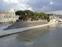 In memory of the event, the front of the island was also remodelled to imitate a trireme. An obelisk marked the island's centre, in front of the temple, to resemble a mast, while blocks of travertine were placed along the edges to look like a bow and stern. Several other structures arose on the island to shelter the sick, as evidenced by several surviving votives and inscriptions.