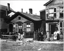 The housing in "Little Sicily" and other Italian communities was in a frightful state. It was located in an area between the north and south side of the city, which was known for being a place of abject poverty. The residents lived in old, overcrowded three or four-story buildings, which would often sink into the ground over time. Most were forced to pay high prices for low quality housing.[12] Although, the area which they resided was surrounded by factories, most Italian immigrants did not want to work in industrial plants, instead choosing to work in rail or construction, who were paid less than their industrial counter parts. This led to even more overcrowding within the housing complex due to families moving in together to afford rent.[11] Even though the residents did not work in the factories, the housing for many Italians were surrounded by them one side and with the river located on the other. This created an almost constant layer of smoke and air pollution which led to an influx of lung related diseases for the residents.