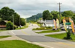 In Cleveland, the route originally turned south about 1/4 mile east of the interchange with I-75 onto a road which is still called Georgetown Road, and briefly ran together with US 64 through downtown Cleveland before splitting off onto Wildwood Avenue.[3] It was moved onto 25th Street after it was widened to four lanes in the mid 1960s and APD-40 after that section was completed in 1974.[4][5] Originally, the route did not cross the Tennessee river into Rhea County, and commuters used Blythe Ferry, which dated back to the early 1800s. In 1994, the current bridge across the river was completed, and Blythe Ferry closed.[6]