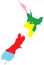 Tennis NZ consists of six regional centres which are affiliated to the national body. They control their own activities subject to any requirements which may, from time to time, be legislated for by the national body.[13]