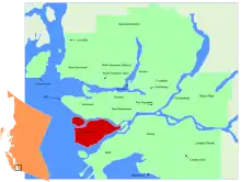 Terra Nova Adventure Park is located in the northwest corner of Lulu Island, at the west end of River Road in the Thompson area of Richmond.[1] Built adjacent to the Fraser River and former farm fields,[2] the location of the park plays a key role in promoting outdoor play and appreciation for nature. The Terra Nova landscape includes "intertidal foreshore, dykes, remnant sloughs, and past and present agricultural [and wetland] use"[3] such as the community garden.
