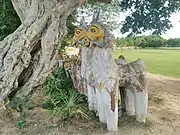 Modern painted horses beside a sacred tree, Tamil Nadu, India